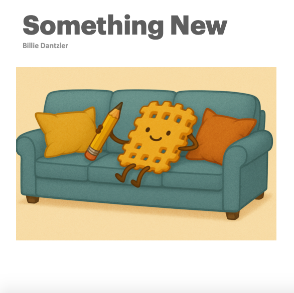 In Something New a waffle fry decides he wants to do something new, an adventure he's never been on before. His best friend, a couch, is scared of losing his friend.